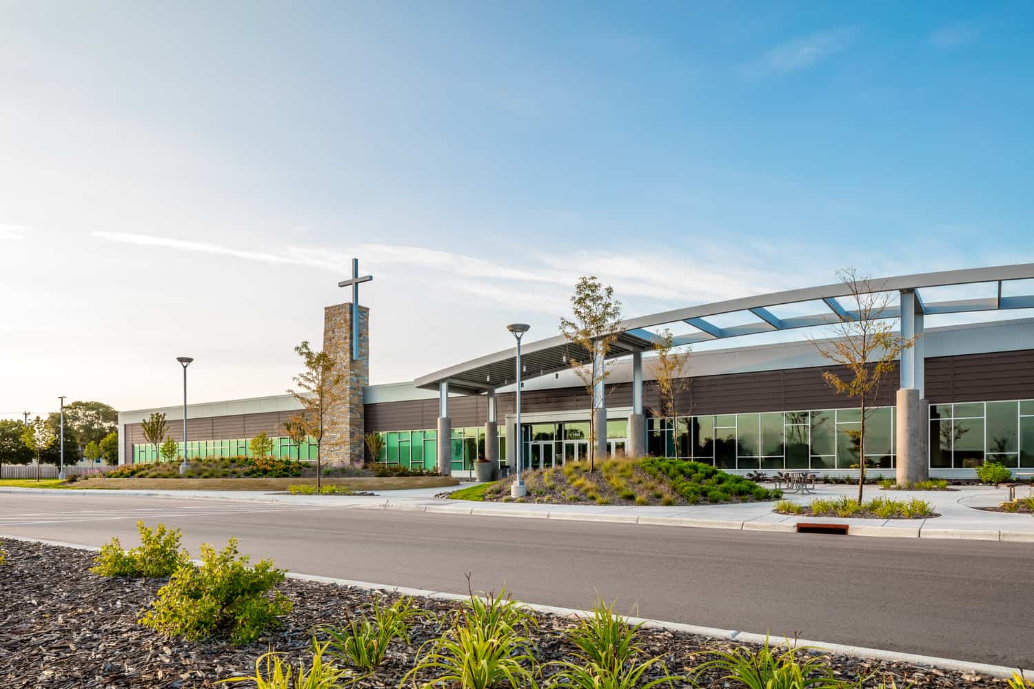 Anoka is the sixth campus for Eagle Brook Church, a multi-site Christian community that has grown from a main campus in Lino Lakes that opened in 2005 as one of the region’s first church communities to feature stadium-like seating, mall-like atriums with cafés, and children ministries with distinct and specific identities. Like the other campuses, Anoka grew out of need, where overcrowding temporary locations led to the search for a site that could accommodate traffic, crowds, and a sense of communal celebration.