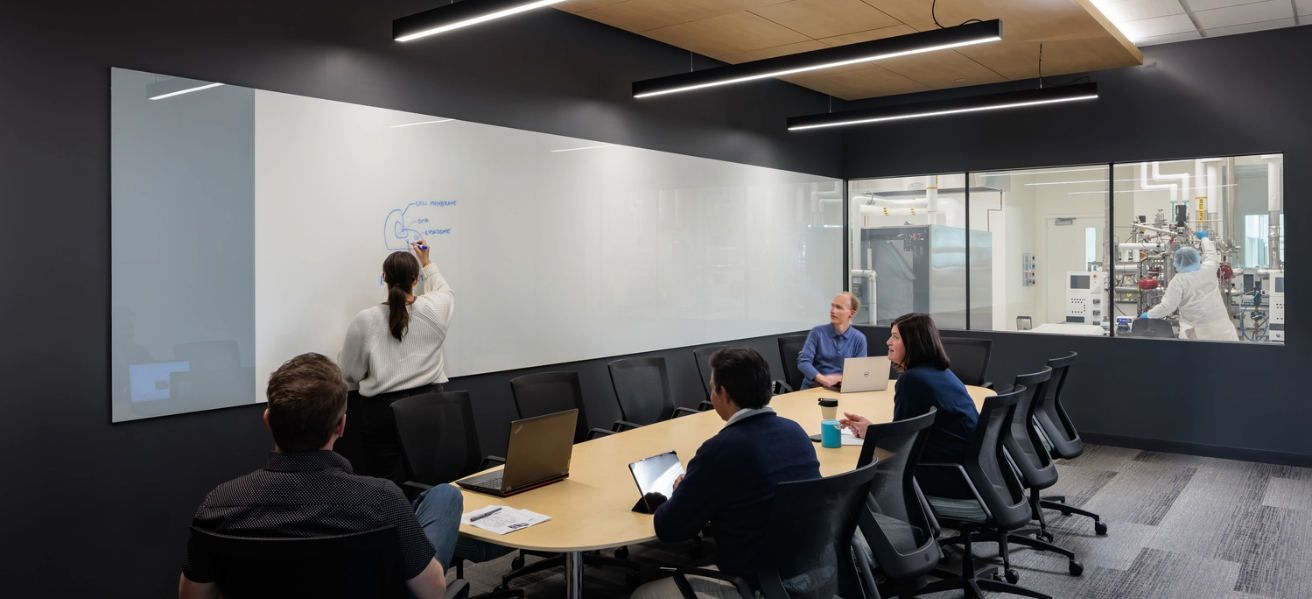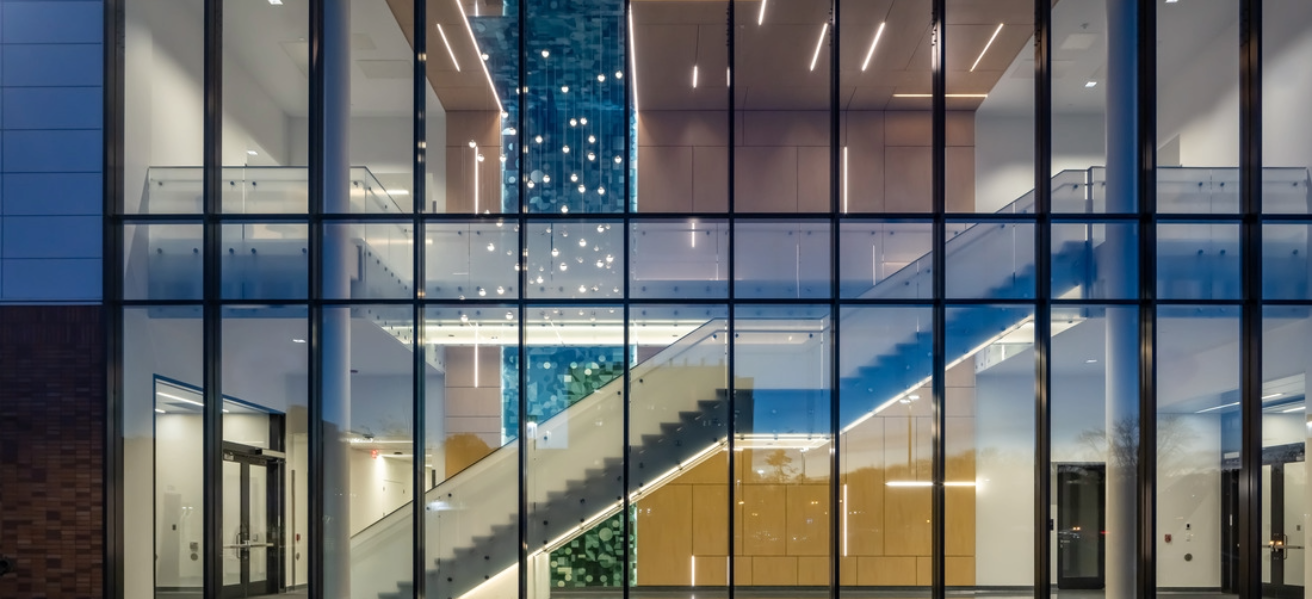 The new facility grows BRC’s capabilities for microbial cell production services, R&D, and consulting, and is intended to be the start of the new Biotech Quadrant on the Saint Paul Campus. Sustainability features include a solar-thermal wall, rooftop PV capabilities, expansion of district utilities, and B3 SB 2030 energy standard compliance. A custom two-story art installation incorporates scientific imagery at micro and macro scales, including cells, bacteria, algae, plant cross sections, neurons, and more.