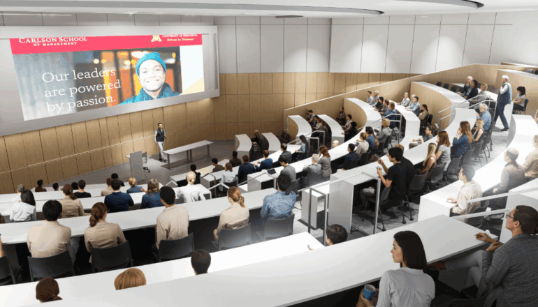 To support the evolving world of business, the University of Minnesota partnered with BWBR and Clark Huesemann on a revitalization of the Carlson School of Management to meet today’s competitive business education needs. Connecting Carlson is the University’s mission for the renovation, elevating the facility to better promote collaboration, strengthen belonging, and enhance hands-on learning. With a focus on the school’s most prominent and frequently used spaces, the project will transform the facility’s atrium with new spaces for collaboration and outreach, as well as renovate the large main floor auditorium into a world-class learning and engagement environment. A new Enterprise Labs suite and a larger, relocated Carlson Analytics Lab space highlight the school’s distinctive Experiential Learning programs, offering opportunities to connect with Twin Cities corporations, gain hands-on business skills, and collaborate alongside staff, peers, and community partners. Select classroom and study spaces on the lower, first, and second floors will be modernized to maximize impact across the school.