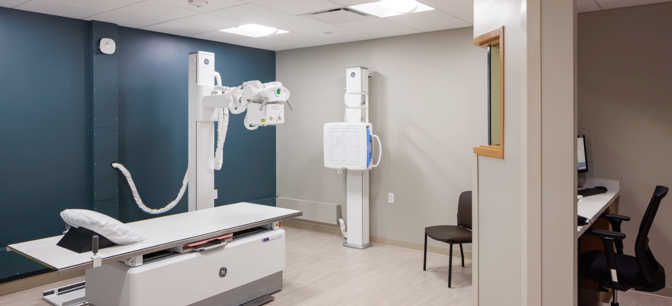 Renovation and expansion of the first-floor primary care clinic and second floor conference room; flexible planning allows the clinic to function as an urgent care after hours; new x-ray services; additional exam rooms accommodate department growth; 630 sq. ft. addition for vertical circulation