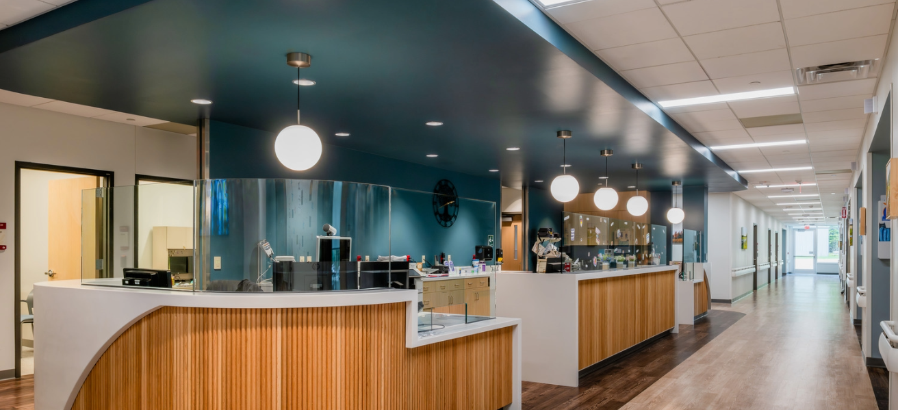 The project consolidates the campus into one state-of-the-art building that improves wayfinding, efficiency, and staff workflows. Contemporary inpatient rooms, new spaces for physical and occupational therapy, an 11-bed med surg unit, and a pharmacy allowing clinic patients and local residents to receive medication on-site help the medical center better meet community needs. With fresh design and amenities, the cafeteria and nutrition services are relocated to the front of the hospital for convenient access. The upgrade supports Marshfield Medical Center-Park Falls into the future with a modern facility that improves the patient and visitor experience while enhancing staff’s ability to provide high-quality care.