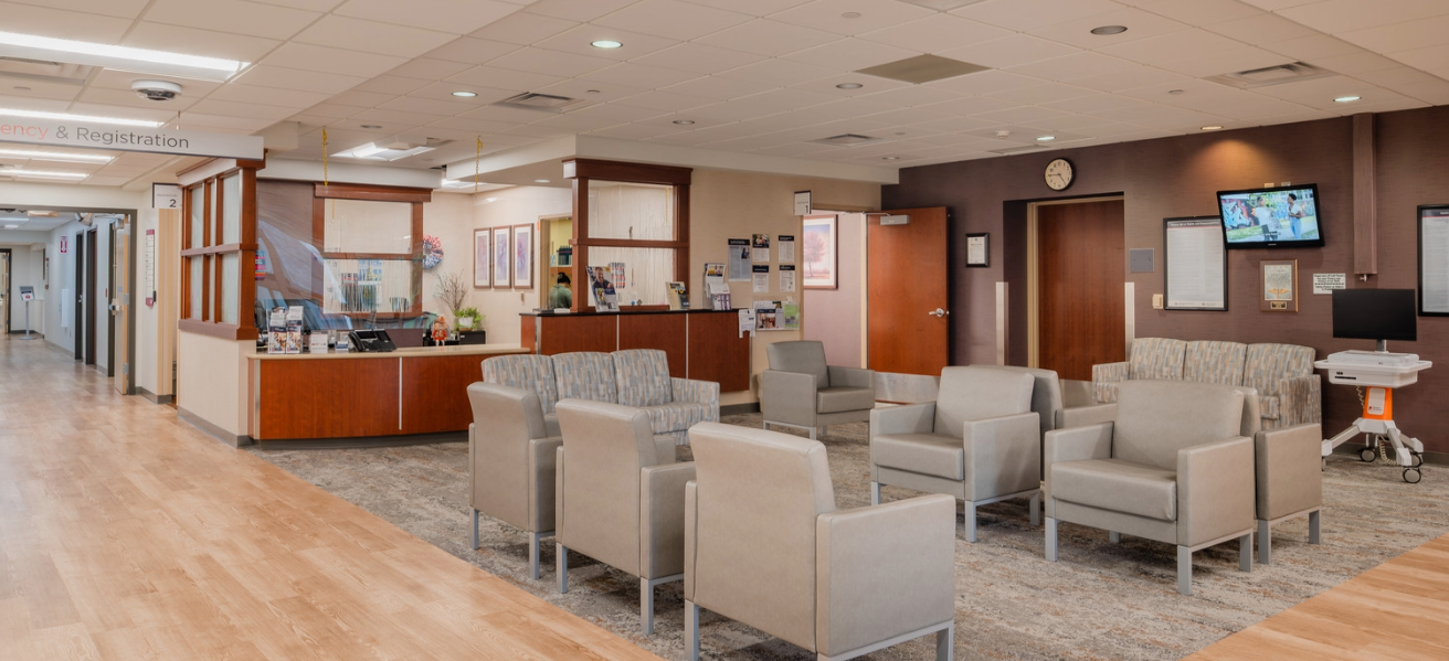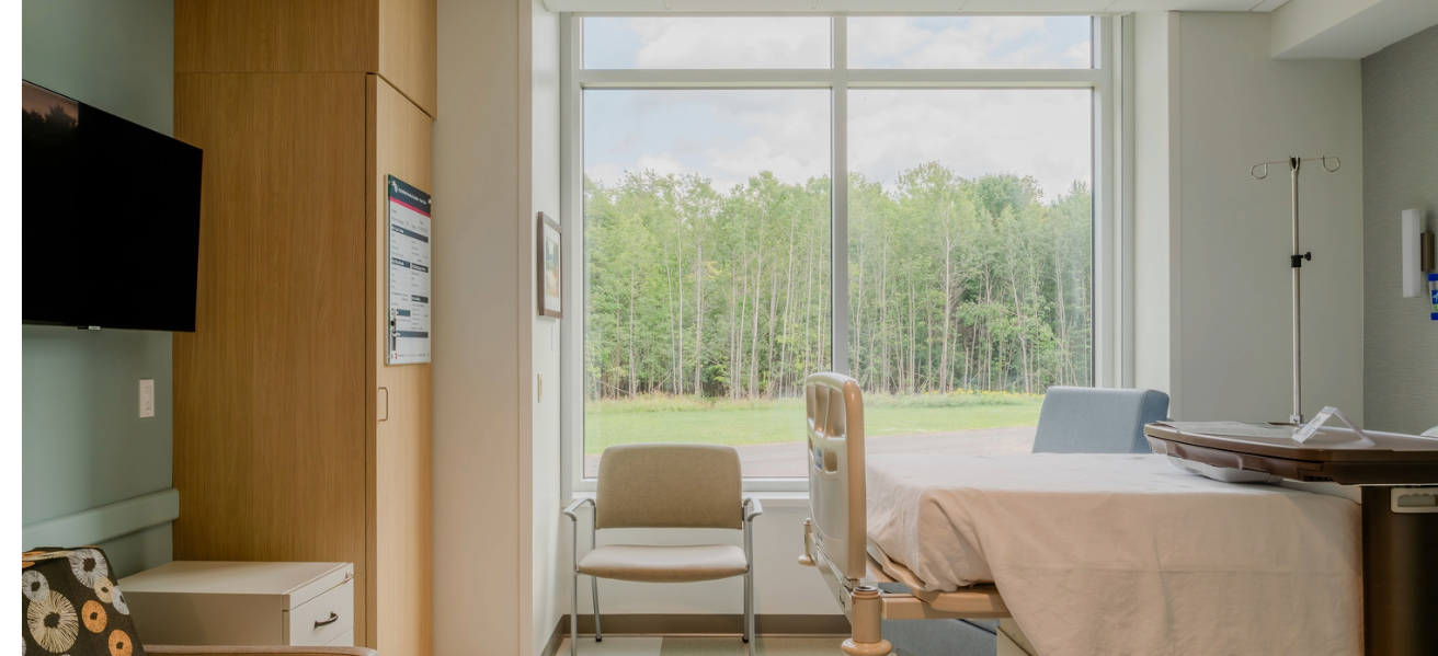 Project consolidates three buildings into one contemporary facility that serves the needs of patients, visitors, and staff; updated HVAC systems and infrastructure; modern inpatient rooms; 11-bed med surg unit; spaces for physical and occupational therapy; on-site pharmacy; relocated and upgraded café and nutrition services